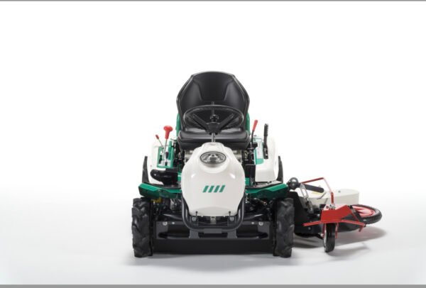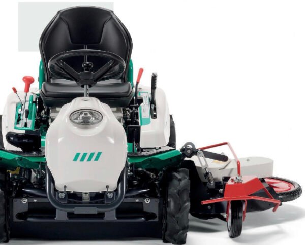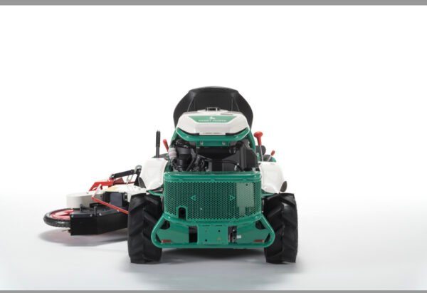 Commentaire Ce modèle est équipé d’une coupe latérale à entrainement mécanique lui permettant de faucher le long des obstacles, sous les glissières de sécurité, de détourer les arbres sans les endommager, d’intervenir dans des vignes ou sous des panneaux solaires… L’engin est motorisé avec le bloc essence Kawasaki FS651V qui déceloppe une puissance de 22 chevaux. Il reçoit comme d’autres modèles une transmission connue pour sa fiabilité avec boite hydromécanique à double pont. Il se déplace de 0 à 10 km/h en marche avant et de 0 à 7 km/h en marche arrière. Son dispositif de coupe original lui permet de tondre sur une largeur jusqu’à 150 cm et de travailler sur des hautes herbes. Il affiche un poids de 310 kg. L’unité de coupe latérale est rétractable au pied. L’intérêt, dans de nombreux cas de figure, est de ne pas à avoir à effectuer des travaux de finition avec une machine portable.