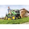 Le X 117R est équipé d’un moteur monocylindre et d’une transmission hydrostatique, avec des commandes à pédales faciles à utiliser et une unité de coupe de 92 cm.